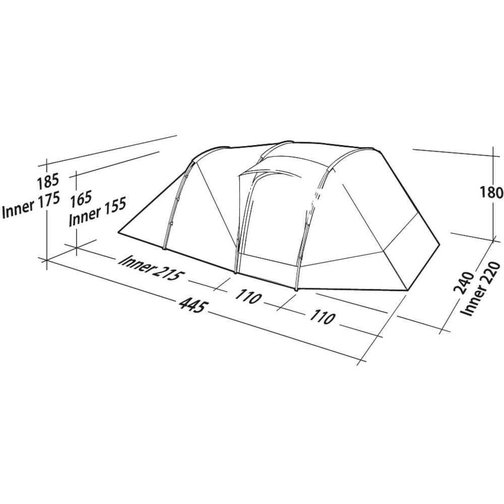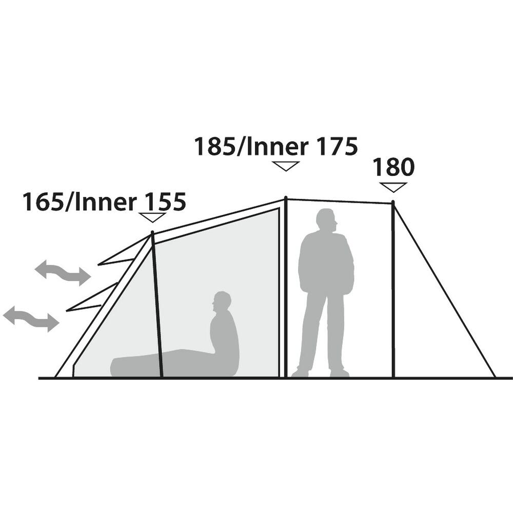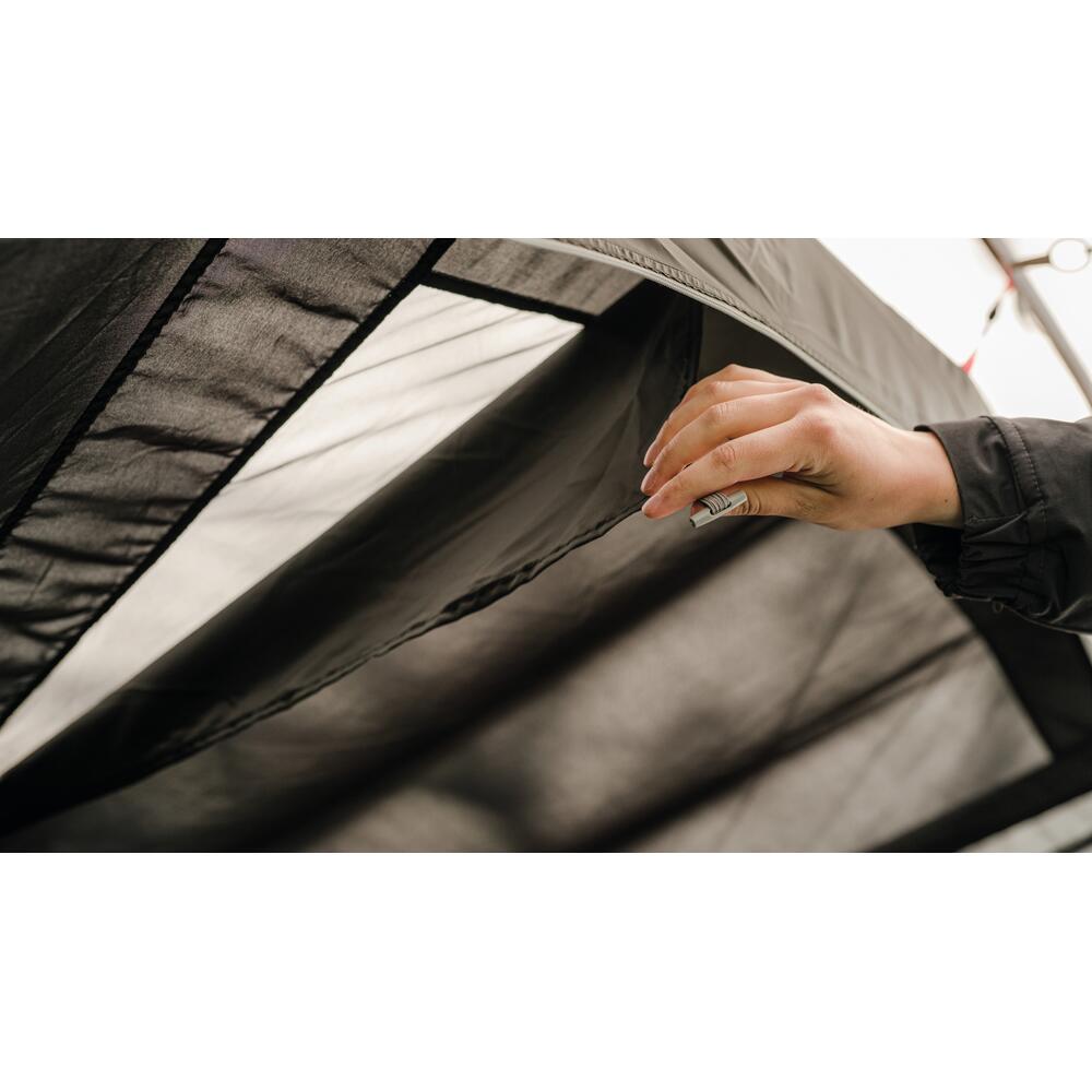 This tunnel style tent has features that include a Rain Safe side door for water-free access. Double rear and low vents control air flow enhanced by mesh panels behind external doors for insect-free ventilation. It also has a mesh panel window backed by a zip-up waterproof curtain with upper PVC panel to balance privacy, ventilation and light entry.