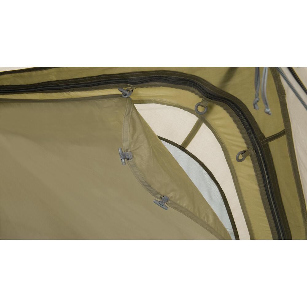 This tent has features that include a Rain Safe side door for water-free access. Double rear and low vents control air flow enhanced by mesh panels behind external doors for insect-free ventilation. It also has a mesh panel window backed by a zip-up waterproof curtain with upper PVC panel to balance privacy, ventilation and light entry.