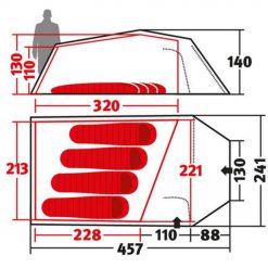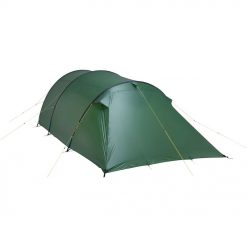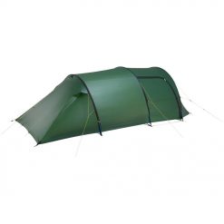 The Tempest 4 is an asymmetrical tunnel tent with 3 colour coded main frames. Due to the unique cut of the inner tent, it also offers a comfortable sleeping place for large people.