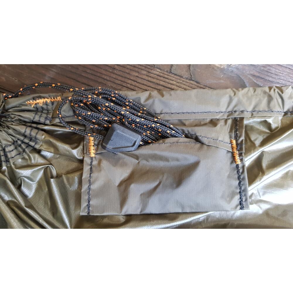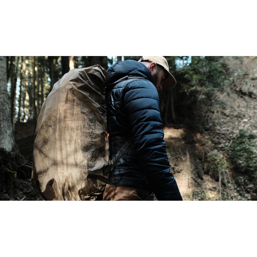 Bushmen B-Cover Gear Sling L is a mini-hammock for your gear and doubles as a rain cover for your backpack.