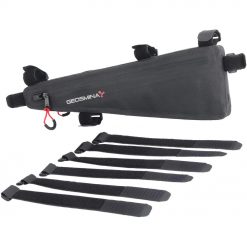 The bag gets attached to the frame by means of removable and interchangeable Velcros, reinforced with Hypalon. These straps come in two different lengths, so they fit on any tube.