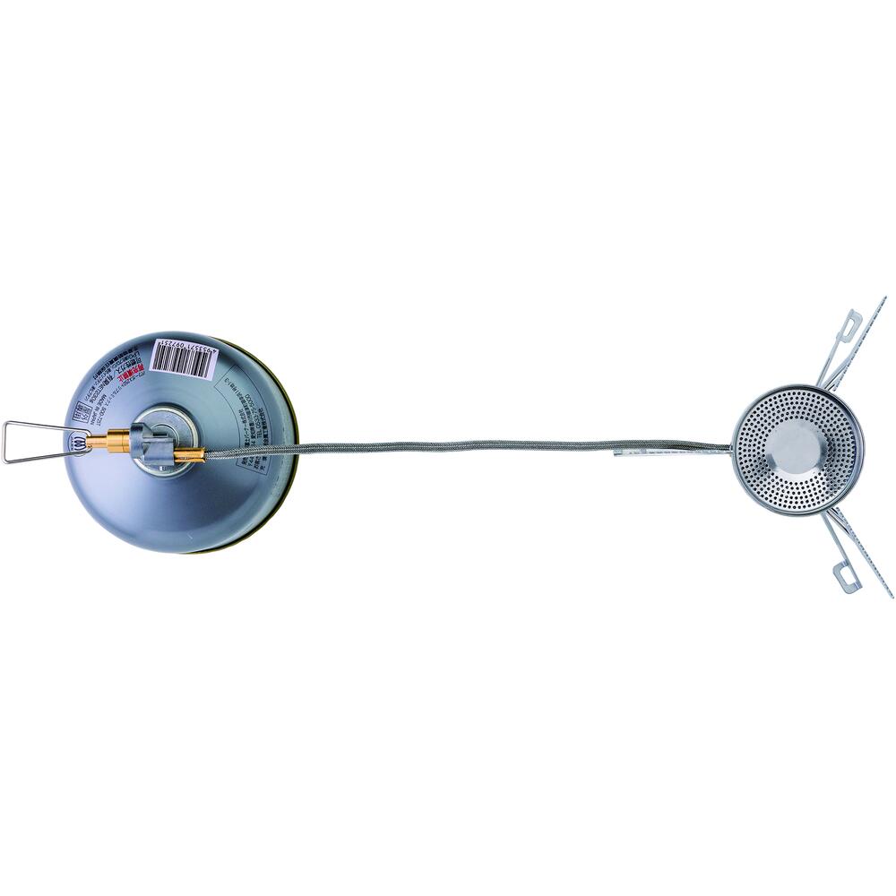 The Fusion Trek also features a stable, 3-leg pot support that sits firmly on rough ground. Due to lightweight materials and a superior design the Fusion Trek is at a weight close to that of the direct connect style of stove. The stove also features a flame control knob installed on the gas adapter allowing the user to remotely control the flame adjustment away from the burner for safer cooking. The concave shaped burner head and individual short flames produced make this stove highly wind resistant.