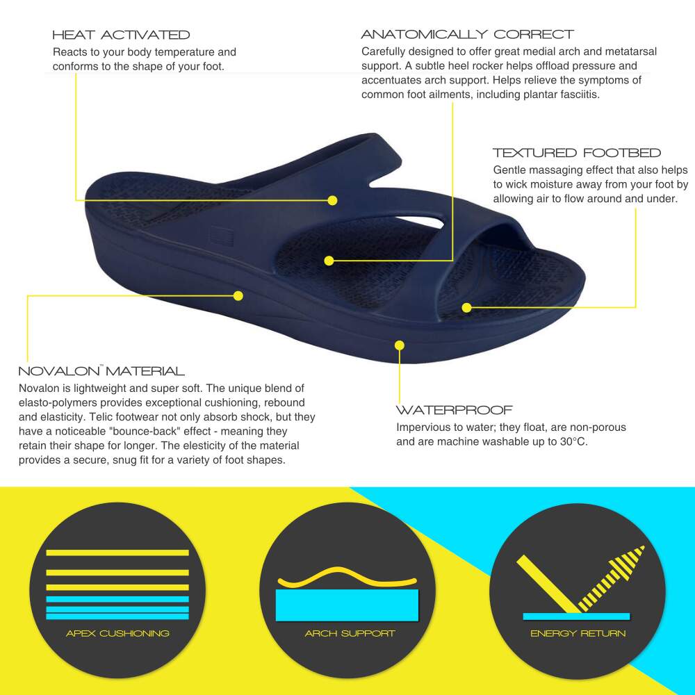 The Telic Z-Strap is made entirely from Novalon, which is an unique blend of elasto-polymers. Designed to provide exceptional cushioning, rebound and elasticity. This means that these sandals not only absorb shocks while you are walking but also retains their shape for longer. So you don’t have to worry about them flattening out through use.