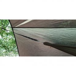 This Thermo Tarp is is also coated with a thermal insulation layer for added thermal comfort. The silver coating perfectly reflects the body heat, which helps keep you comfortable during cold nights. On hot days it reflects sunlight, significantly lowering the temperature under the tarp.