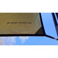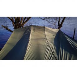 This Thermo Tarp is is also coated with a thermal insulation layer for added thermal comfort. The silver coating perfectly reflects the body heat, which helps keep you comfortable during cold nights. On hot days it reflects sunlight, significantly lowering the temperature under the tarp.